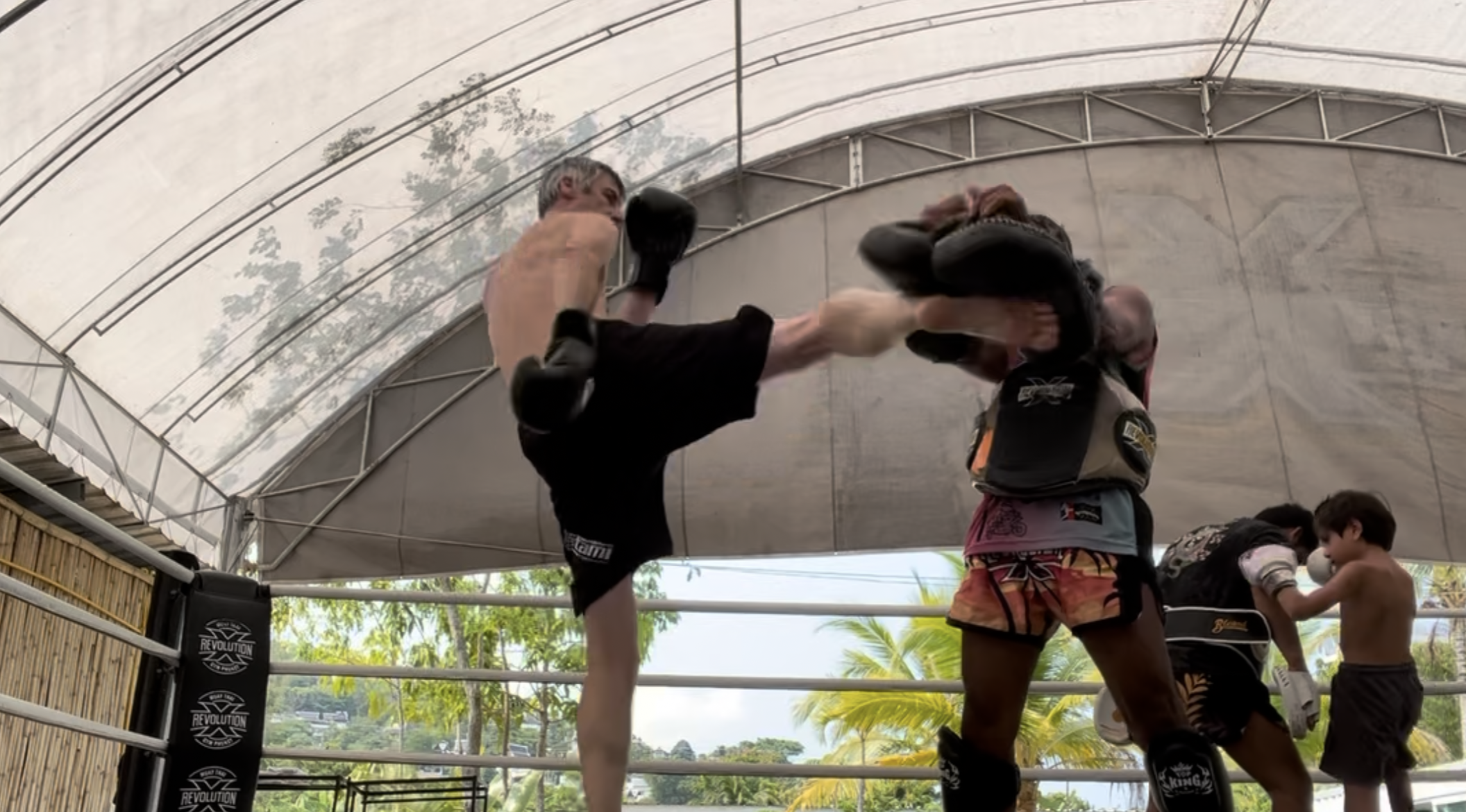 I trained pure Thai for many years under the late, great Winston Fraser who was twice European champion. I’ve also travelled to Thailand three times, to train. Tiger Muay Thai in Phuket is world famous and frequented by fighters from the UFC and ONE Championship. I’ve also trained at SuperPro on Koh Samui. I’ve always just loved the training and never had the hunger to compete much, but I did fight in the ring (K1 rules), aged 53, just to tick the box. I’ve now retired, undefeated. Ha!